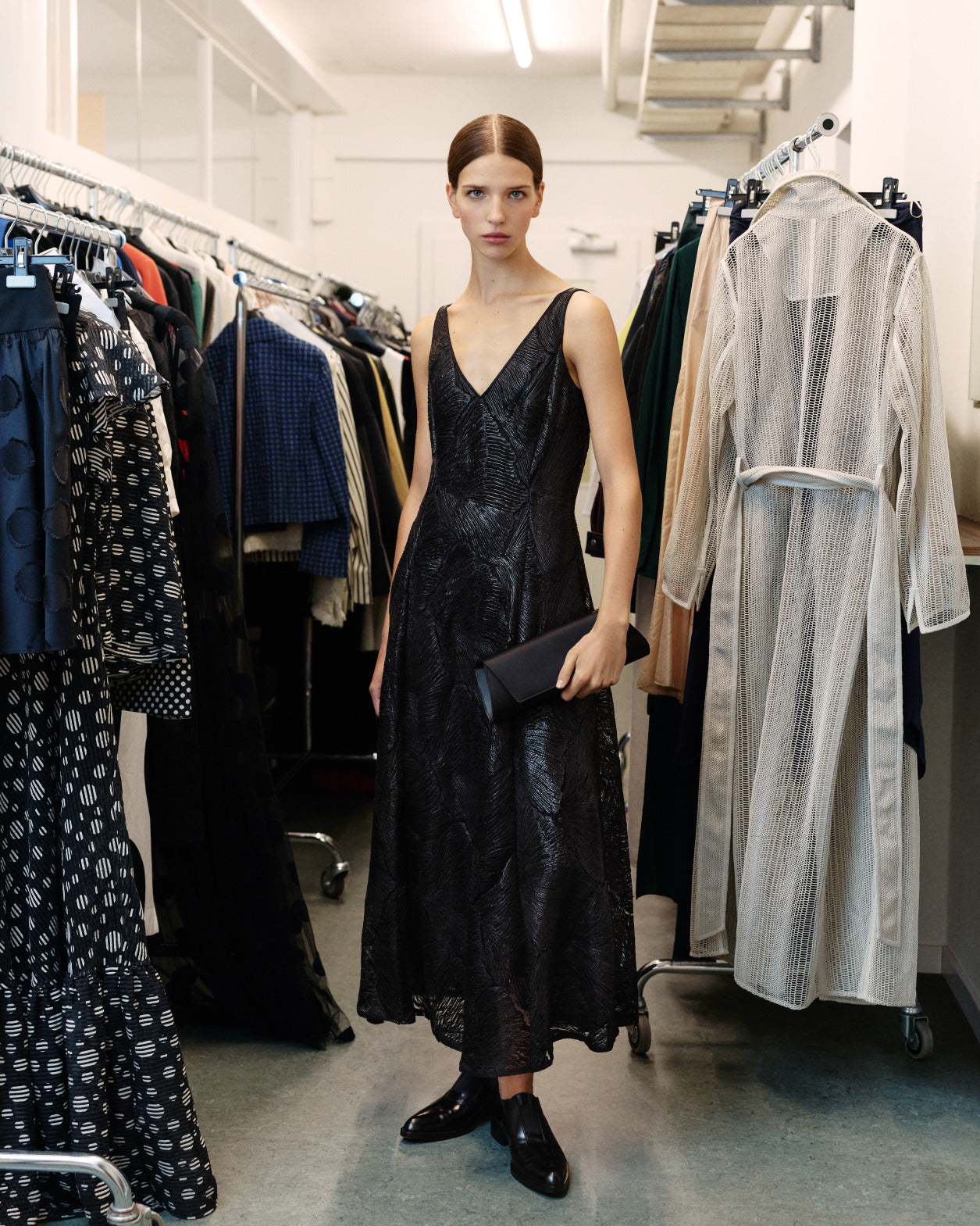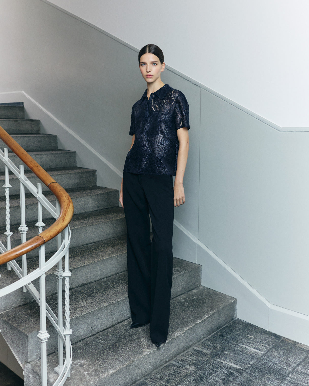 Photographed against the textured backdrop of the Akris ateliers — from the fabric storeroom to the spiral staircases — the collection offers a glimpse inside the heart of Akris, the house where each
