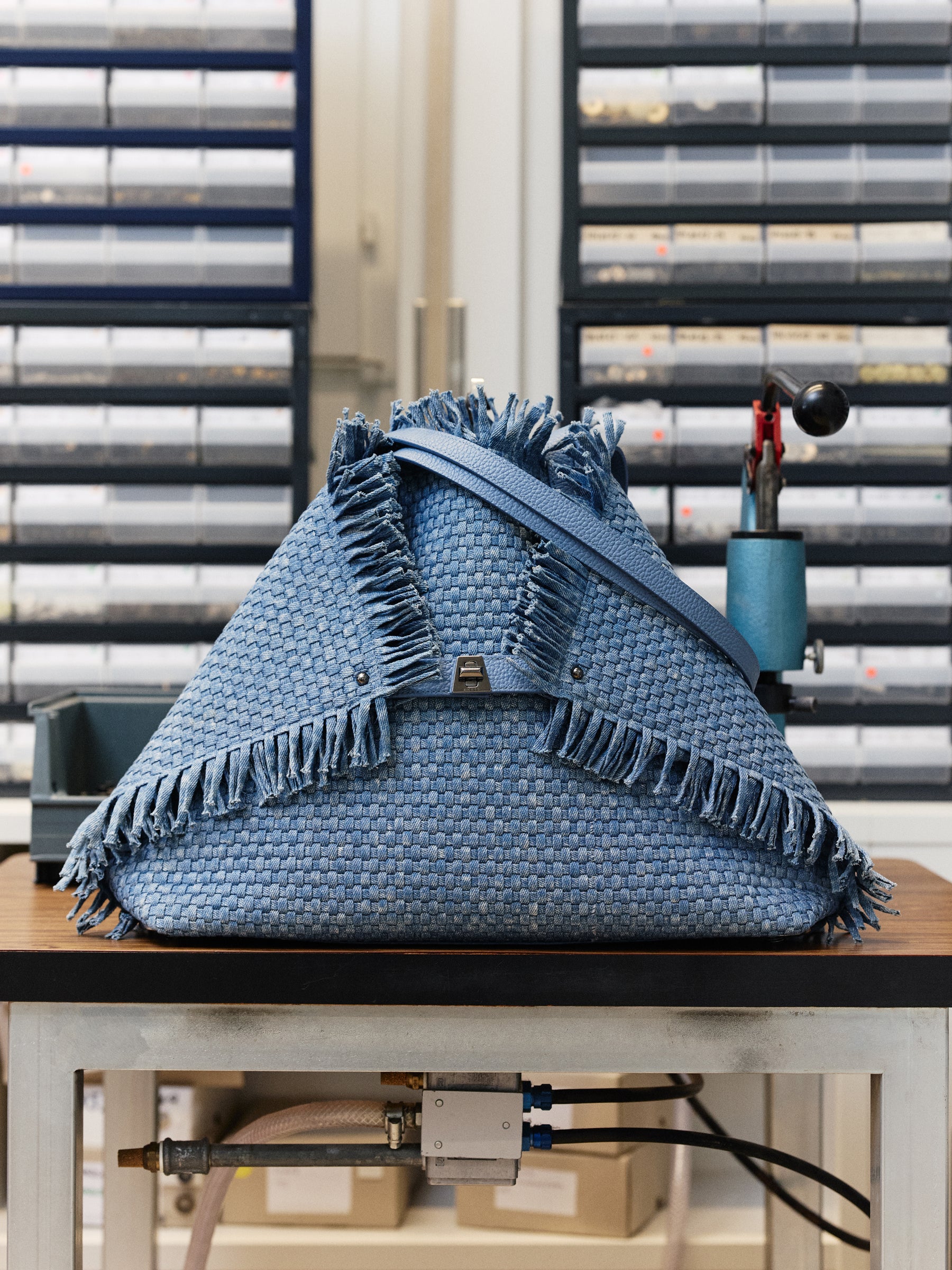 From the pattern cutter to the Anouk Trapezoid clutch, geometry and craft converge — each silhouette shaped by the same architectural clarity that defines Akris.