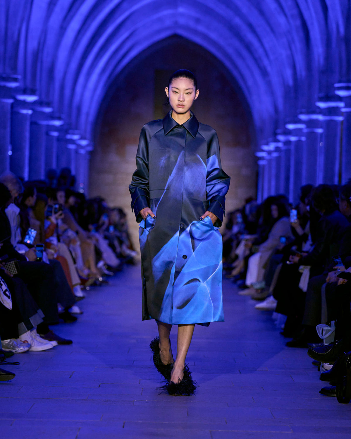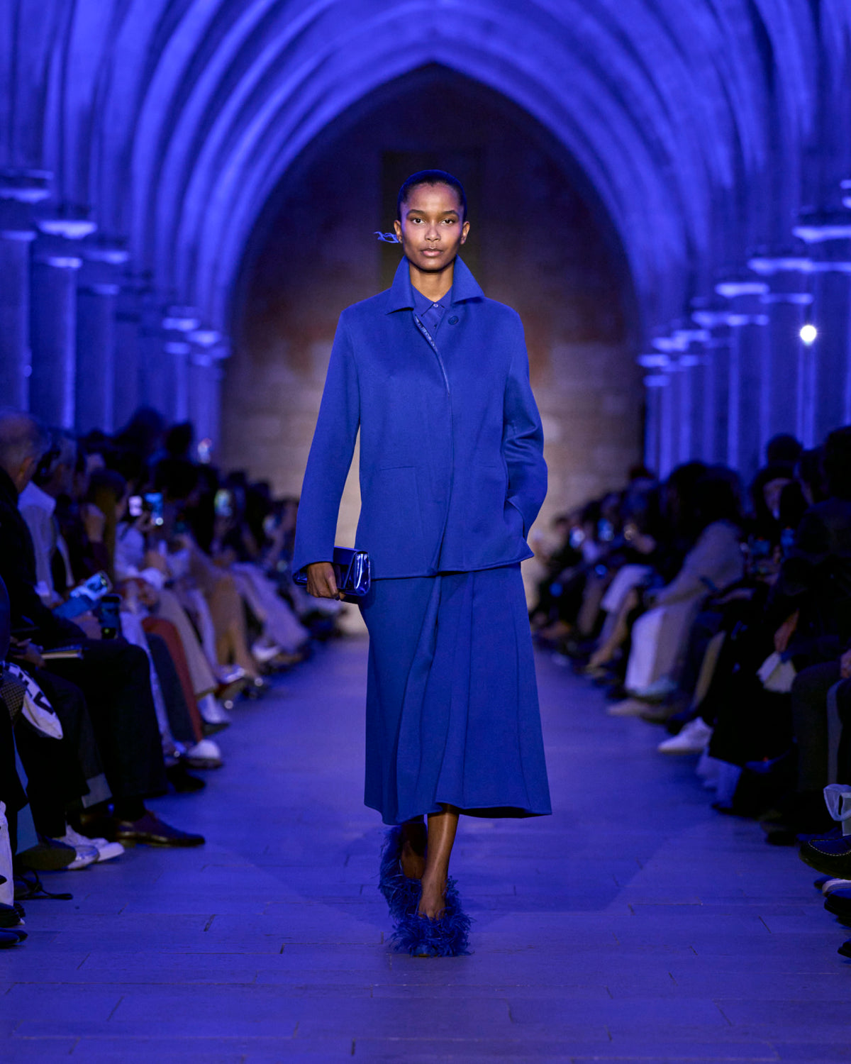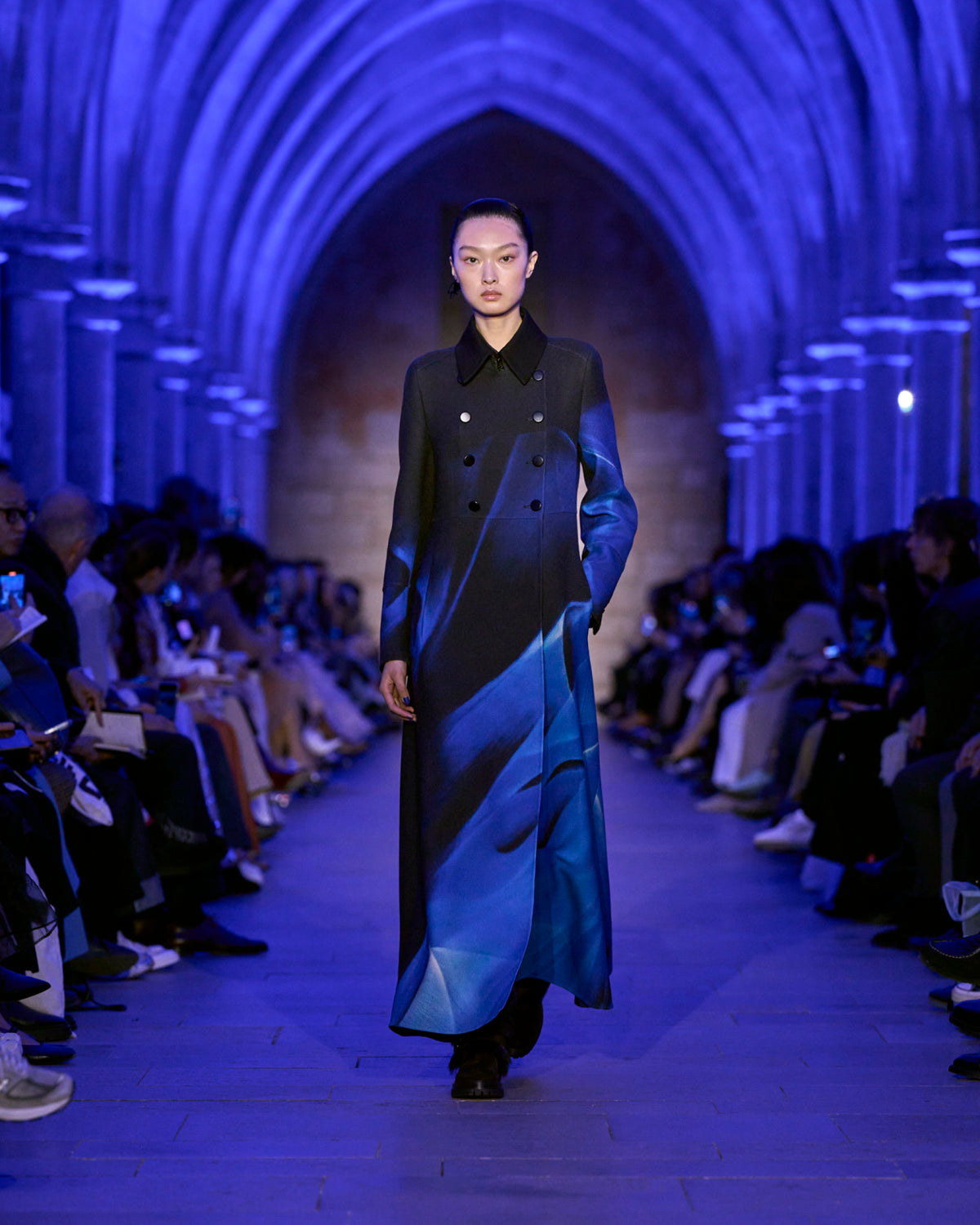 Akris Fall 2025 captures the blue hour — a moment when day and night cross fleetingly, held in tension. Here, everything shifts.