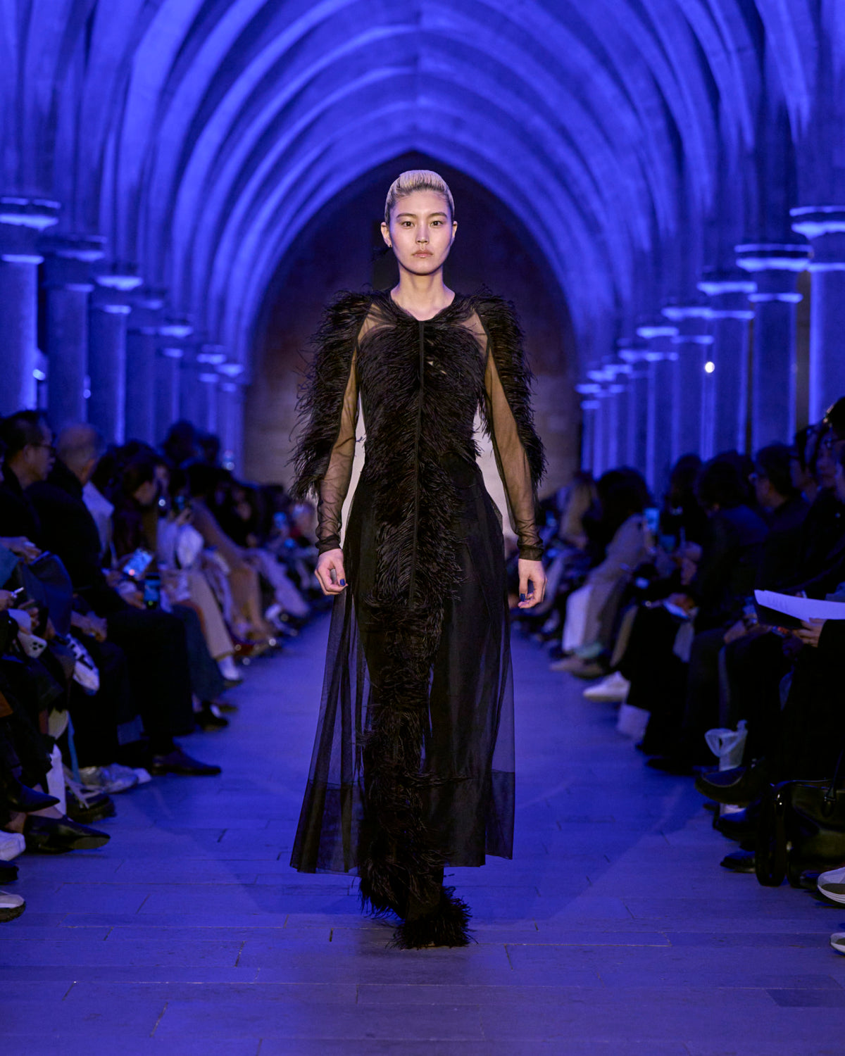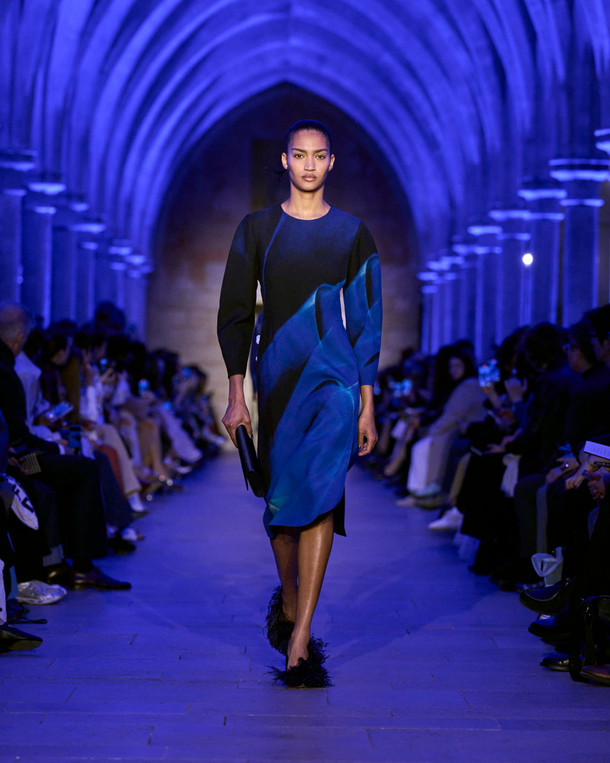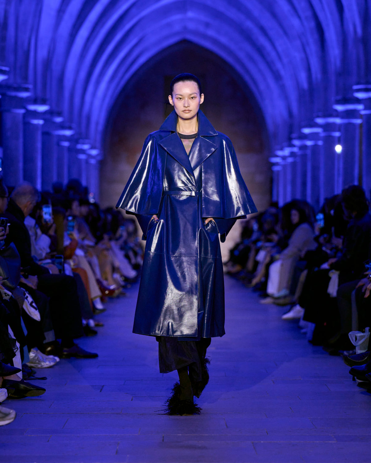 Akris Fall 2025 captures the blue hour — a moment when day and night cross fleetingly, held in tension. Here, everything shifts.