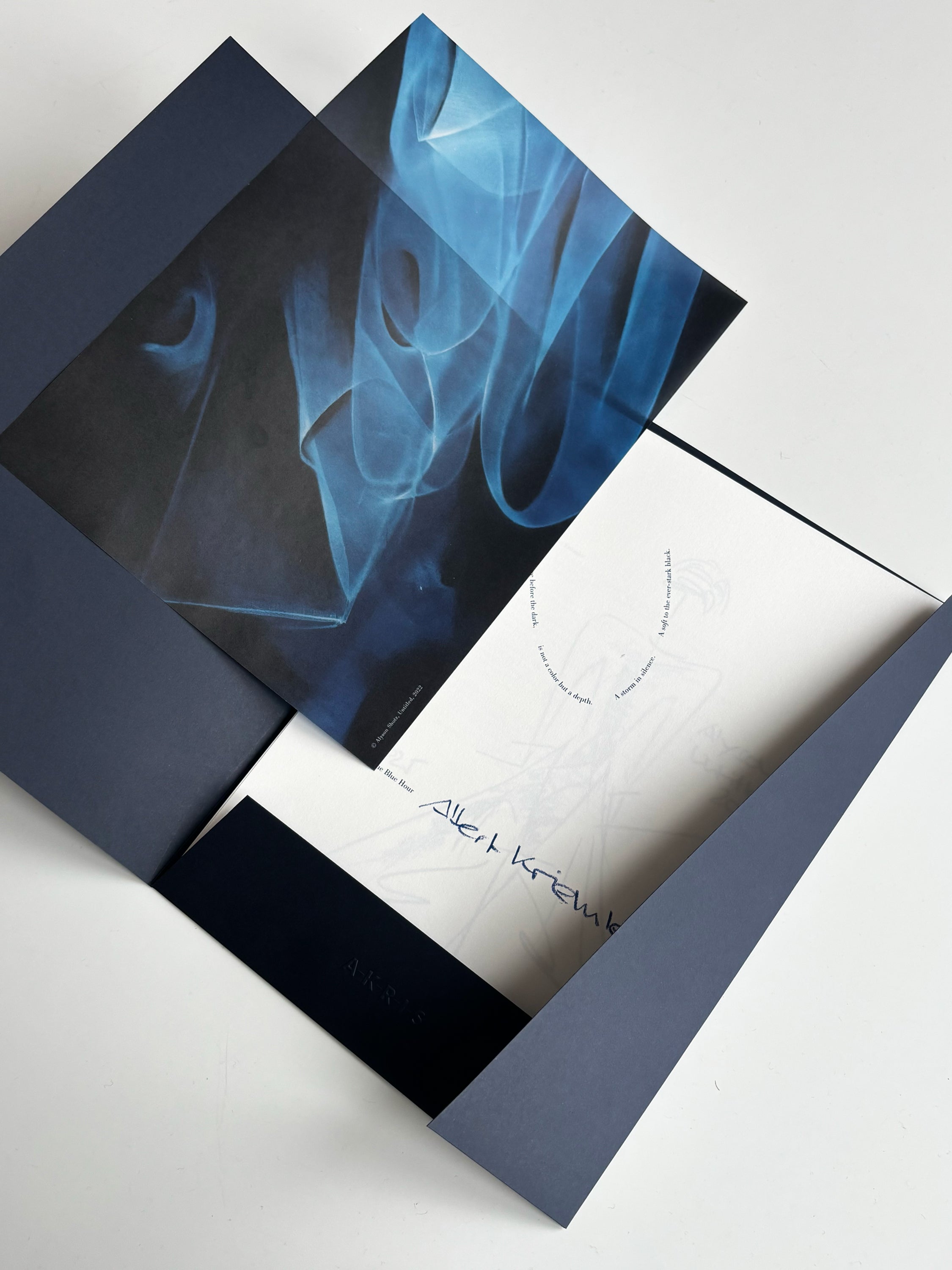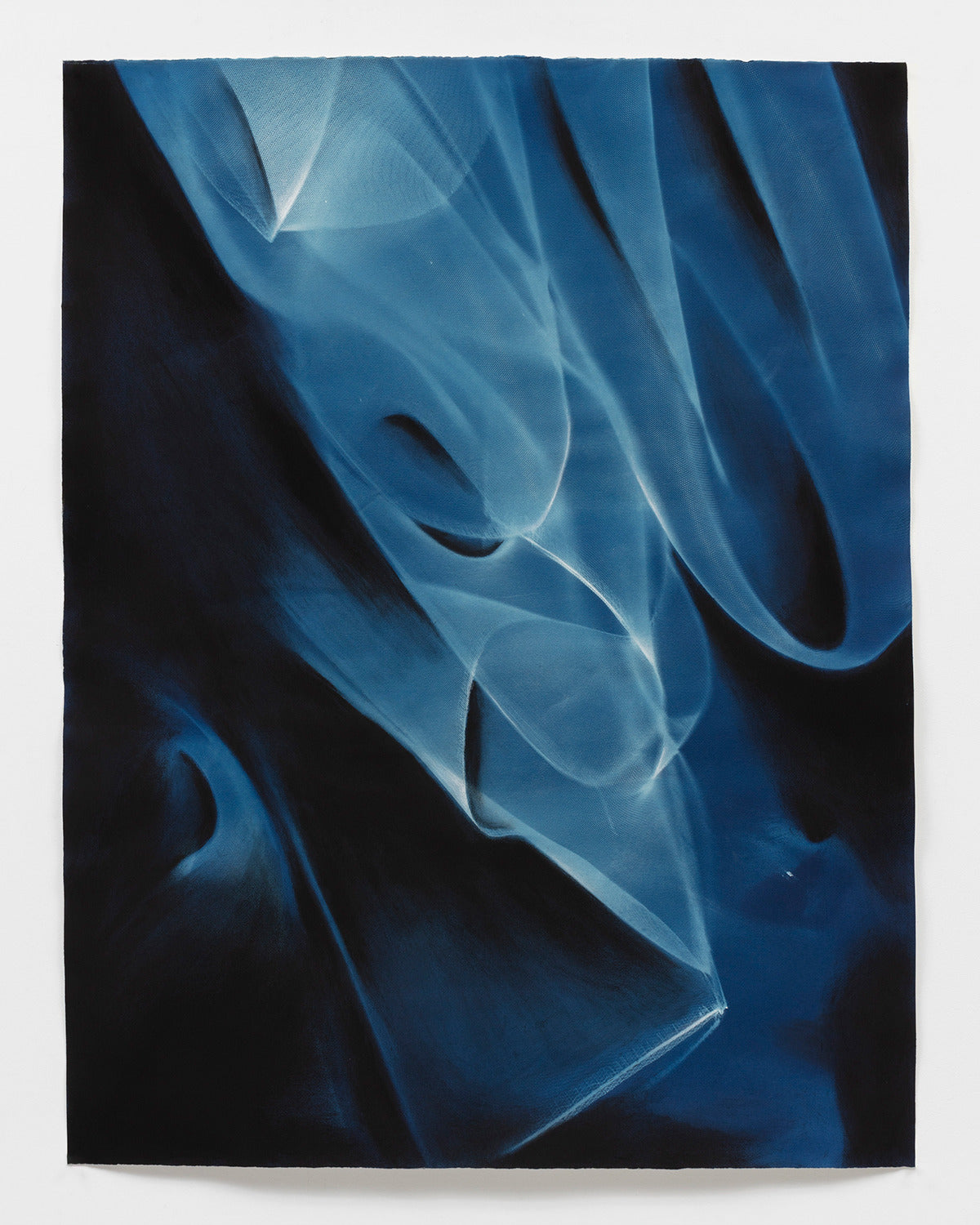 “Alyson's cyanotype conveys this deep, multilayered representation of blue,” Albert states. Cyanotype, also known as blueprint or Blaupause, is derived from the Greek word κύανος (kyanos – cyan), meaning 'dark blue impression.' Cyanotypes, once used for architectural and scientific drafts, are created by treating paper with an iron-salt solution and exposingit to UV light, which causes the pigment Prussian blue to form.