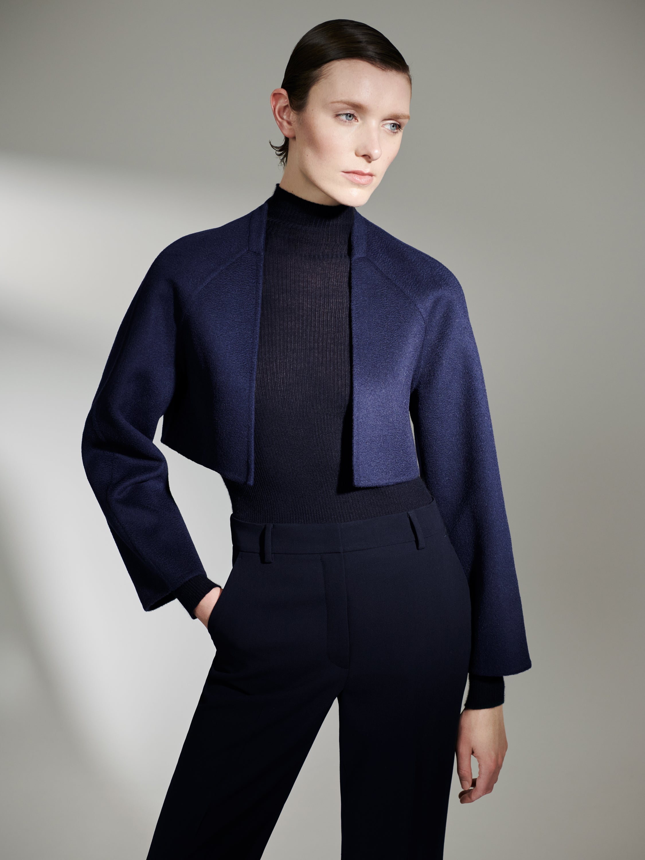 An Akris icon, the Alfa was the fashion house’s first cashmere double-face coat, created by Max Kriemler in 1978. For sourcing the fabric, Alberts`s father took him to an Italian mill that made cashmere. One meter of that cashmere weights 800 grams and cost 250 francs. This Italian mill is still one of Akris`s cashmere suppliers. Creative Director Albert Kriemler revived the design in 2023 as an homage to his father and in celebration of Akris’ 100 year anniversary.