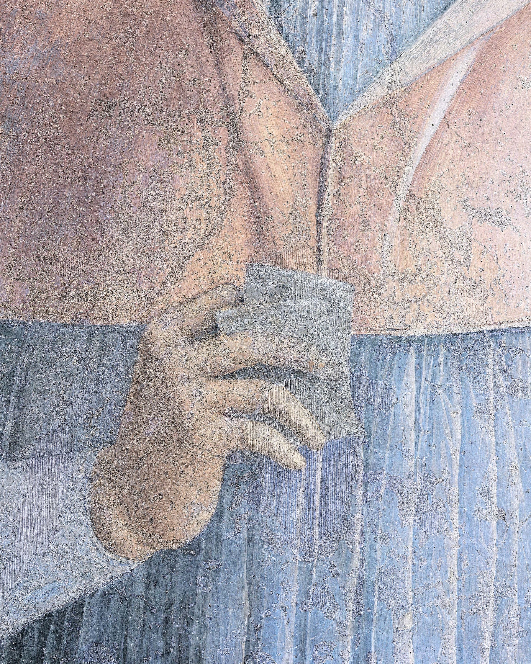 His subdued, sublime colors sparked my fascination with the Early Renaissance and Mantua, Italy, a 15th-century cultural nucleus. It was there that I found myself in a room painted in fresco — full of light and life: Andrea Mantegna's Camera degli Sposi. Mantegna's use of light and shade mesmerized me, creating a visual impression of volume and granting his figures a presence that appeared individual and three-dimensional, even real. Giving attention to the carved details — the fold of pleats, the curve of a line — introduced depth to the picture.