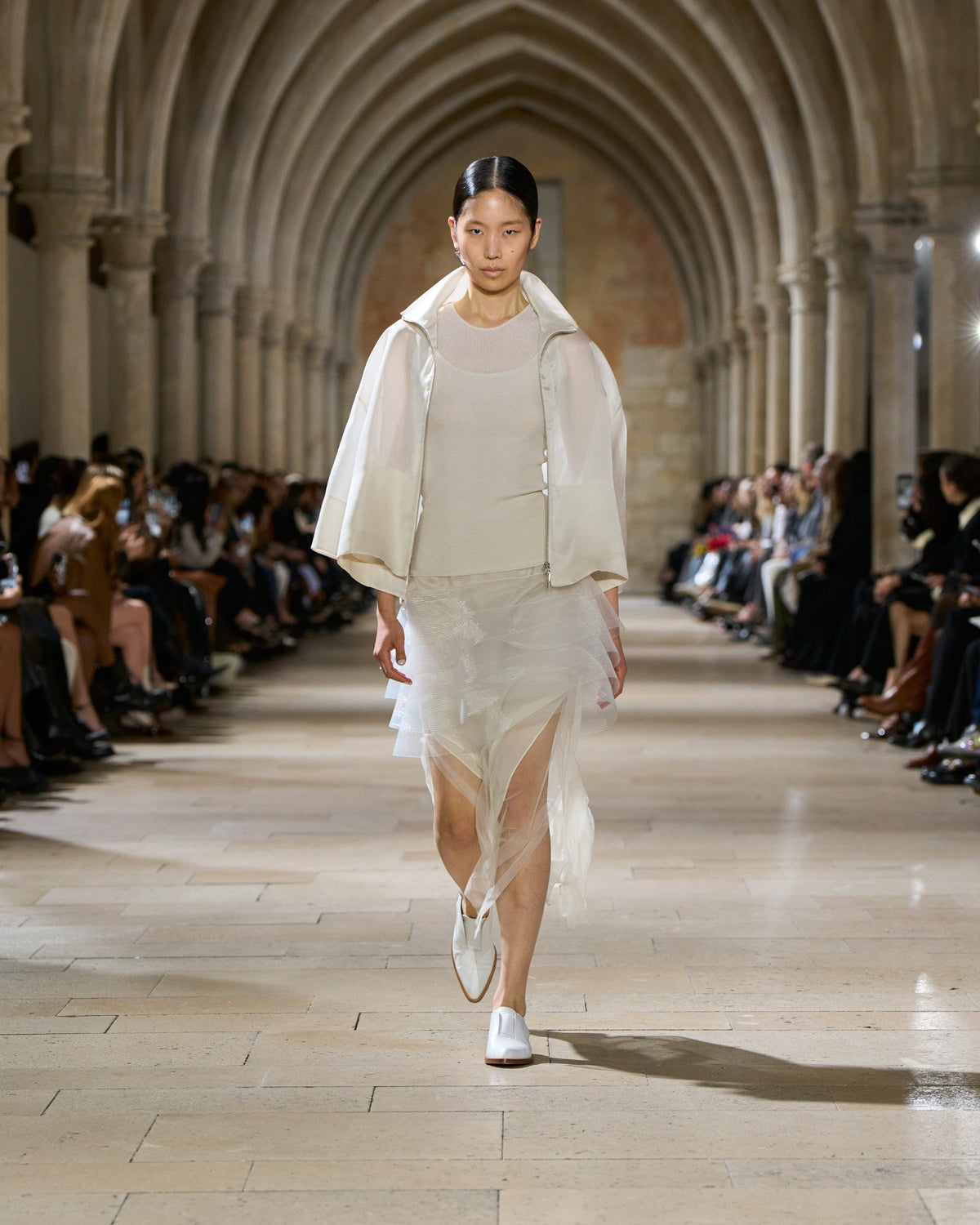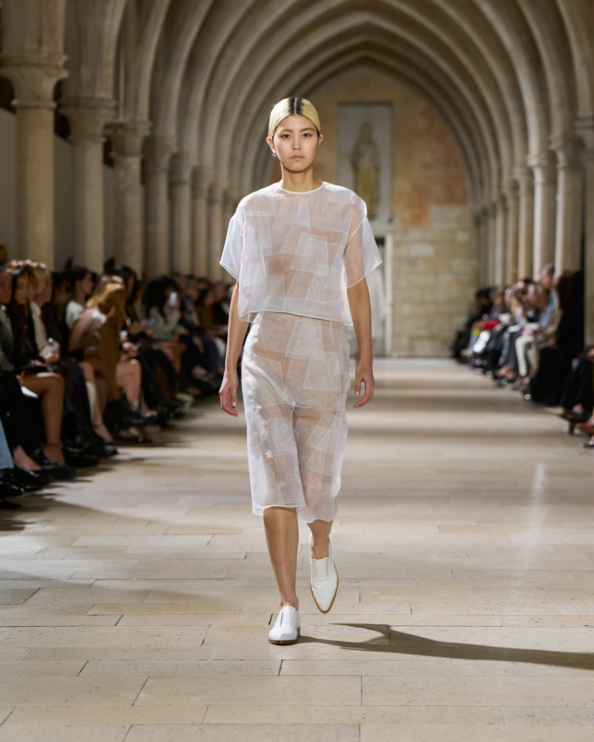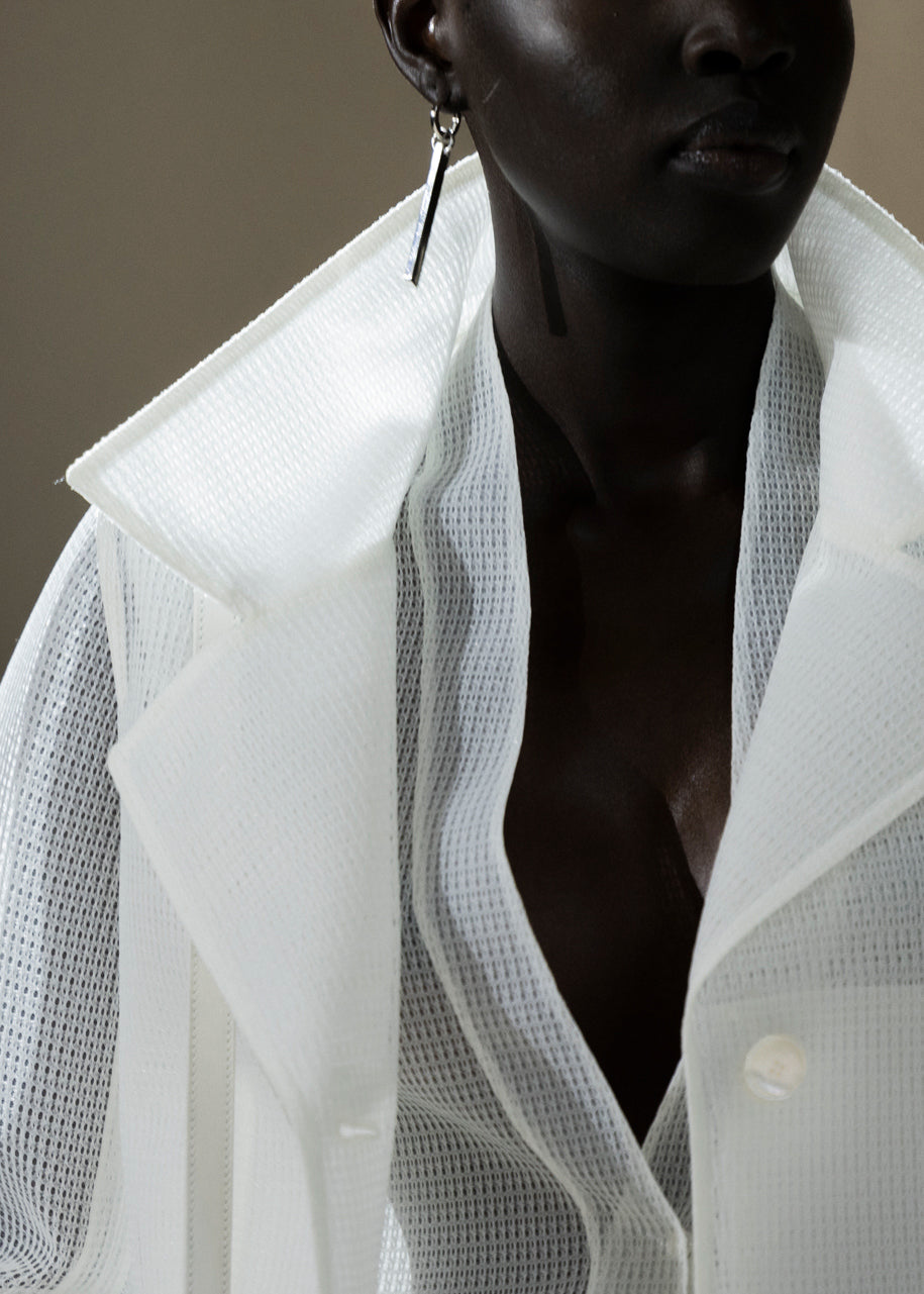 Silk, panama organza, techno grid, and fine gauze cotton knitwear.