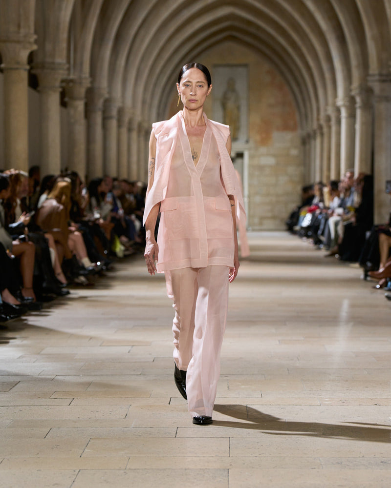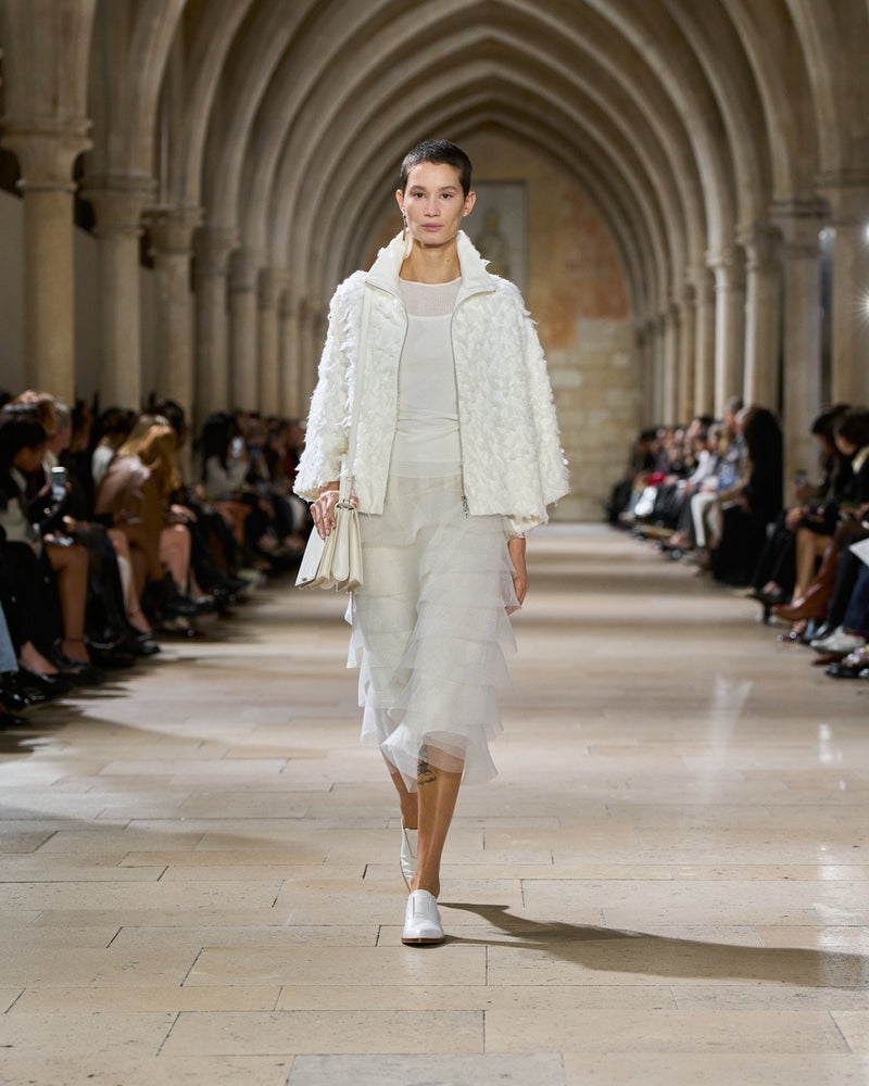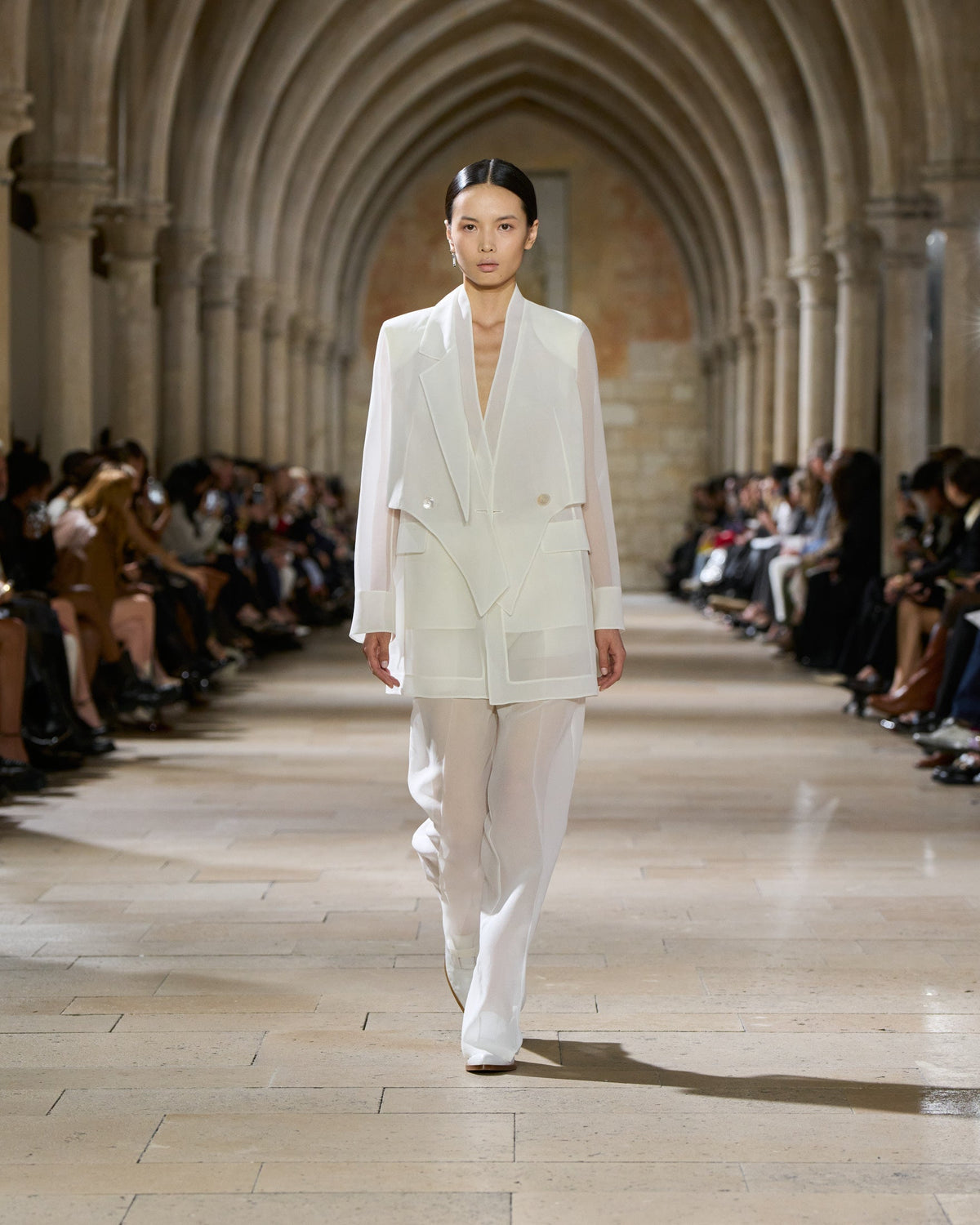 Silk, panama organza, techno grid, and fine gauze cotton knitwear.