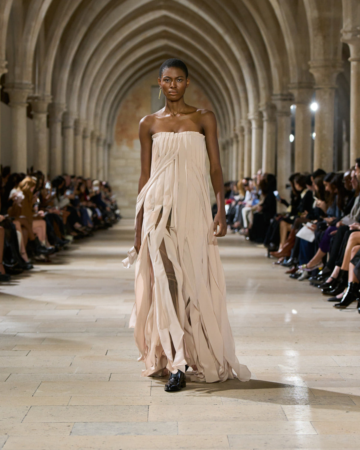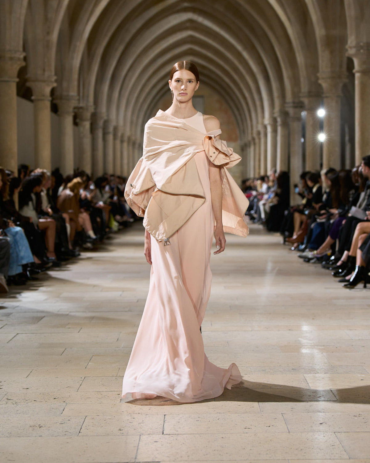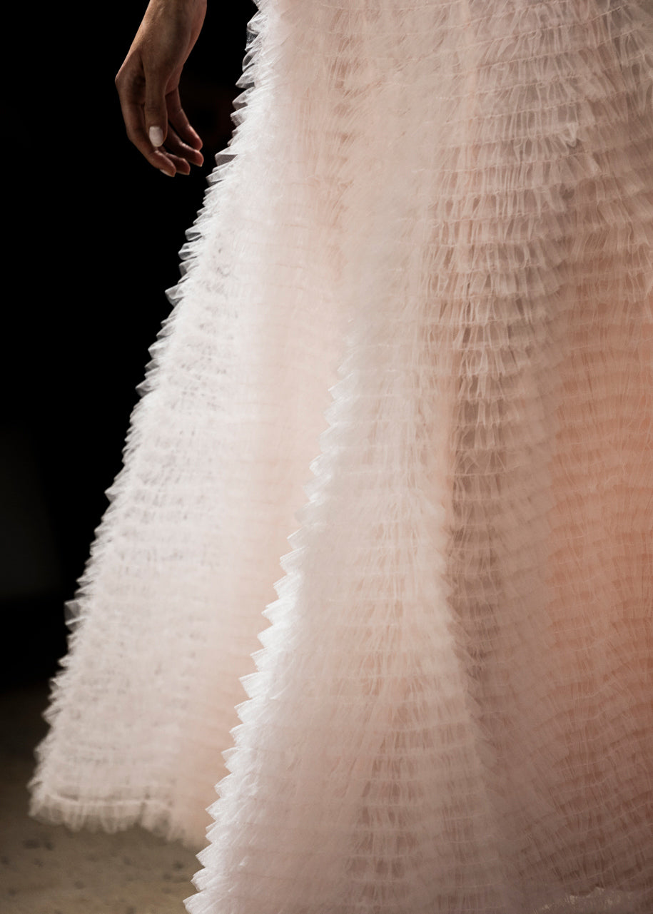 A diaphanous nature, evoked by tulle overlays, translucent as layers of paint in a fresco.